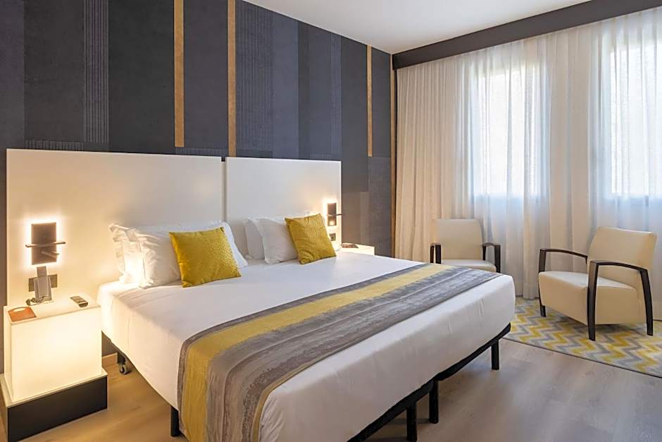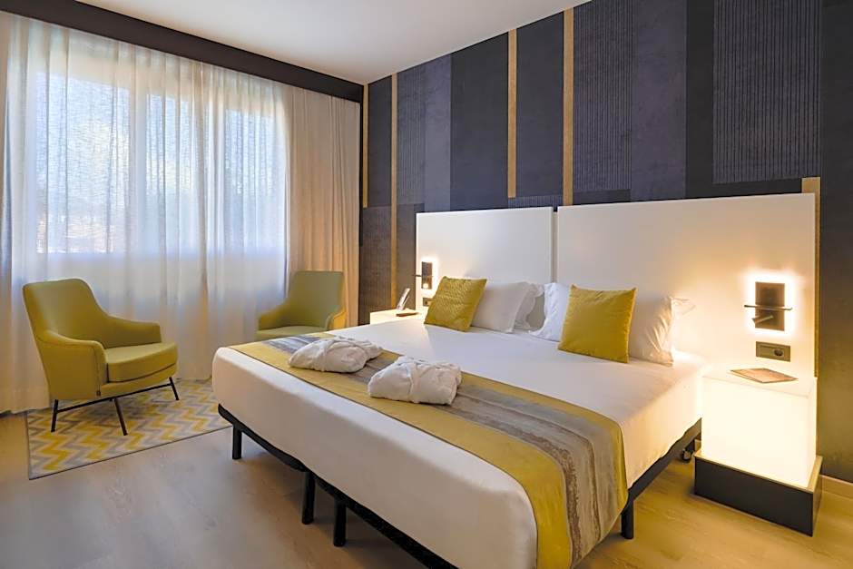 This room features sound-absorbing PVC flooring with wood effect finish, king size double bed, LCD TV, armchairs, kettle with tea infusion, coffee maker and spacious bathroom with shower or bathtub.